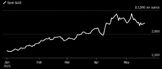 黄金在创下六个月最大单周跌幅后反弹,对美国经济前景和预算赤字的担忧加剧提振了避险资产需求。现货黄金在亚洲早盘交易中一度上涨1.3%至每盎司3,245美元附近。此前穆迪上周五晚间宣布将美国政府的最高信用评级从Aaa下调至Aa1。该机构将其归咎于历届政府未能削减预算赤字。